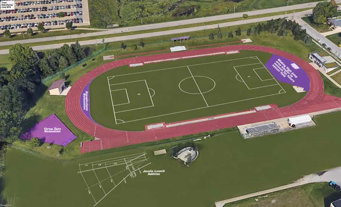 The soccer program's competition field will be moved back to campus and located in the interior of the track.